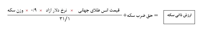 ((31/1 گرم = 1 اونس )) عیار سکه طلا 31/6 می باشد که به معنای خلوص 90 درصدی آن است. عدد 0/9 در فرمول از همینجا بدست امده است.