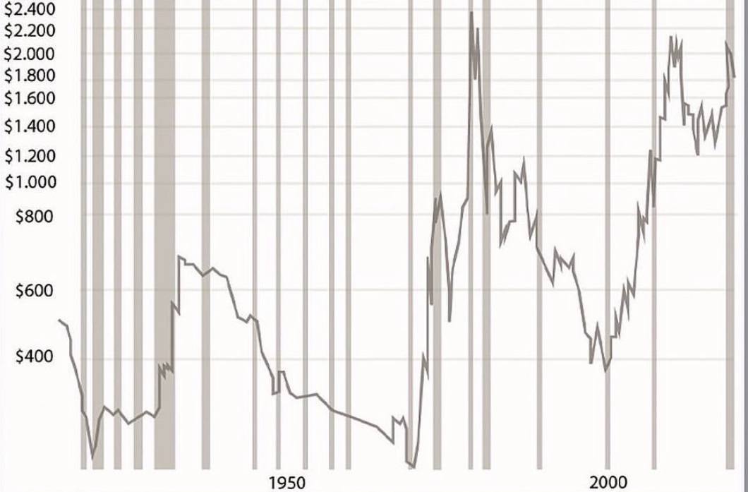 روند قیمت اونس جهانی اونس طلا در 100 سال گذشته